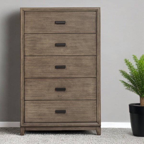 Enhance your room into a visually delightful and highly functional space with this 32" gray solid wood five drawer standard chest. This chest of drawers is tall and lean making it an ideal choice for smaller rooms or as an additional storage option in larger rooms. Equipped with five easy open drawers for practical and good looking clothing storage. This dresser is built to last from high quality solid wood, The gray coloration of this piece is neutral and will blend easily with most any decor. 51.5" H x 32" W x 18" D