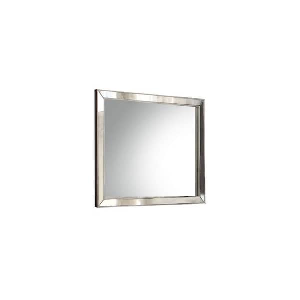 This 32-inch platinum wood framed mounted dresser mirror adds the finishing touch to your bedroom. Framed with wood, this mirror will bring practical application and fashionable design to your space, adding some modern flair to your decor. Features quality craftsmanship in every facet that ensures durability and long-lasting wear. This mirror is the perfect choice to update your bedroom and create a sanctuary of comfortable and inviting relaxation for your home for years to come. Add this exceptional quality mirror to your space for a beautiful reflection and a bit of elevated style. 32-inch h x 36-inch w x 1-inch d.