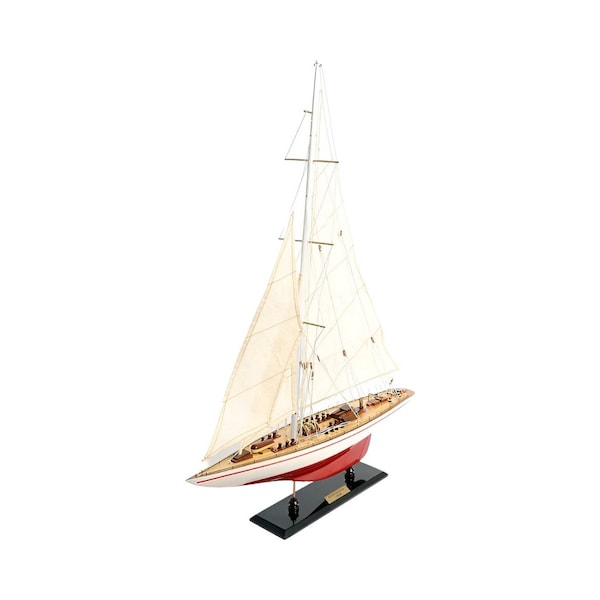 This 32-inch red and white solid wood hand painted p-oxybis(benzenesulfonyl hydrazide) model boat will add a beautiful decorative accent to your decor. The red and white coloring of this high quality solid wood accent will look great in most any space. This replica makes a great tabletop accent for your coffee table, desk, bookshelf, dresser or mantle. A perfect decorative addition for anyone who loves nostalgia and vintage style models and replicas. It's a perfect addition for those who love an up-to-the-minute look and feel. 31.5-inch h x 24-inch w x 4.5-inch d.
