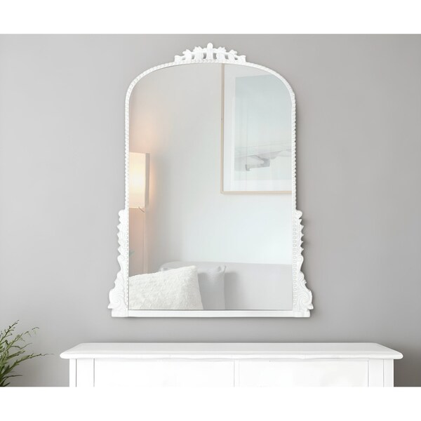 32" White Arch Baroque Framed Accent Mirror