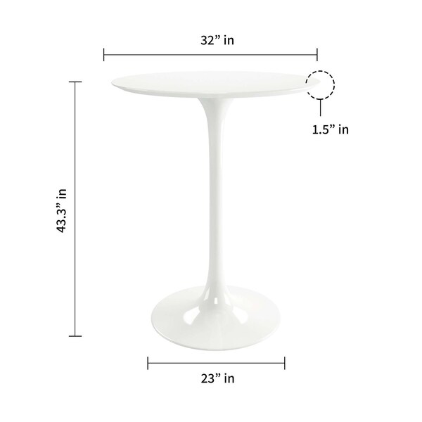This 32-inch white rounded fiberglass and metal bar table is a stylish addition to any bar or restaurant. Crafted with a durable fiberglass and metal construction, this table guarantees long-lasting use. Its sleek white color and gloss finish add a touch of elegance to the space. The round table shape provides a cozy and intimate setting for up to 2 people. The fixed table mechanism ensures stability and the pedestal base adds a modern flair. Whether you want to create a trendy bar area or an inviting dining spot, this bar table is the perfect choice. Its versatile design allows it to blend seamlessly with various decor styles. Transform your space with this chic and functional bar table. 43.3-inch H x 32-inch W x 32-inch D