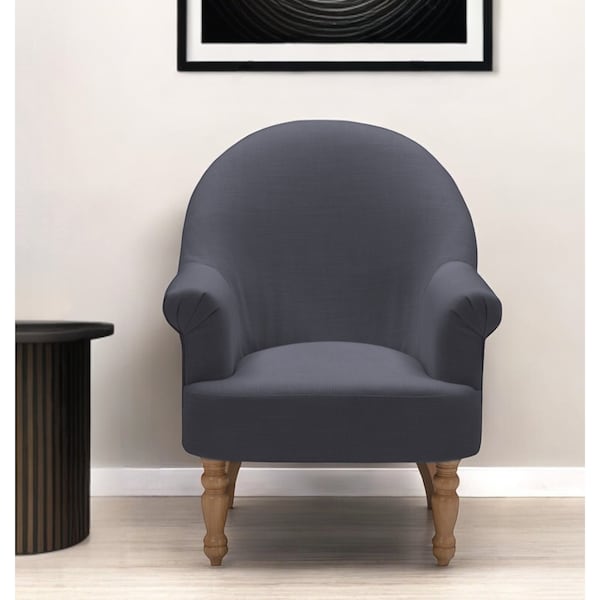 A mix of form and function, this 33-inch dark gray and brown linen arm chair will bring a good looking and usable accent to your space. This sturdy linen upholstered arm chair comes in a chic solid dark gray color to give your space just the right look. The high quality solid wood inner frame flaunts convenient armrests and a tight back that are complimented by soft and comfortable cushioning. 39.4-inch h x 33.1-inch w x 31.5-inch d.