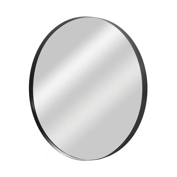 Add beauty to your bathroom or home with this 35-inch black round aluminum framed bathroom vanity mirror. This round shaped mirror will open up any space you put in piece in. This mirror makes your bathroom glow with its fantastic frame. Its contemporary style makes this mirror a favorite for bringing some flair to your bathroom. Quality craftsmanship in every facet ensures durability and long-lasting wear. Hang it up in your bedroom, your bathroom, or in your living room to elevate the space instantly. 35-inch H x 35-inch W x 1.97-inch D