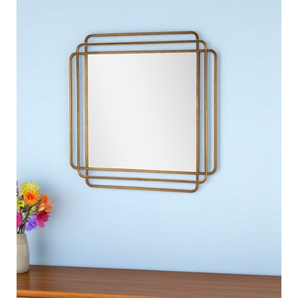 Beautify your space with this 35-inch bronze square metal framed accent mirror. Framed with metal lines in and art deco style, this mirror will bring practical application and fashionable design to your space that adds some contemporary flair to your decor. This mirror will be a great useful addition to your home but will also help elevate the space in the room. Add this exceptional quality mirror to your space for a beautiful reflection and a bit of elevated style. 35-inch h x 35-inch w x 1.25-inch d.
