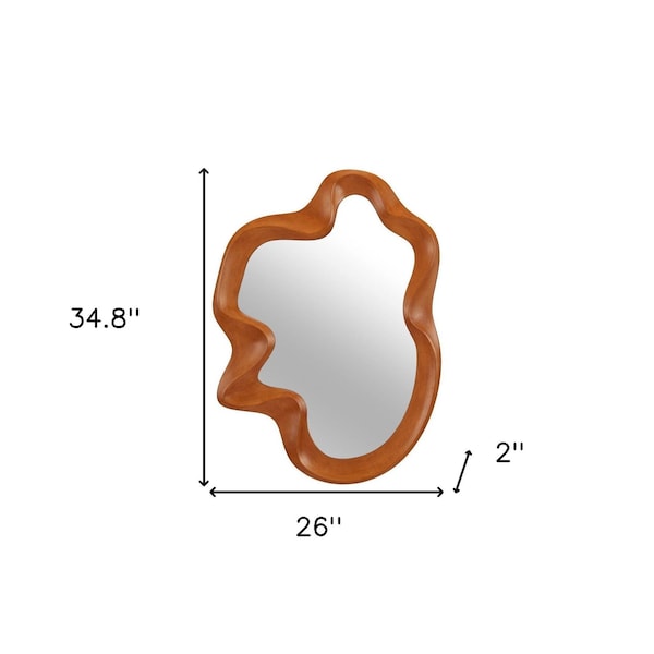 If you want to add some brightness to your living space, the 35-inch brown solid wood abstract geometric framed accent mirror is perfect for you. Framed with solid wood in a unique organic abstract shape, this mirror will bring practical application and fashionable design to your space, adding some modern flair to your decor. This mirror will be a great useful addition to your home but will also help elevate the space in the room. Produced with premium quality glass for a beautiful reflection, this mirror will provide an exceptional visual experience. 34.80-inch h x 26.00-inch w x 2.00-inch d.