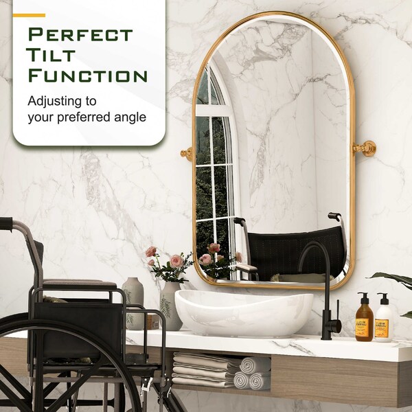 Elevate your space with the timeless charm of this 35-inch gold arch metal framed standing mirror. The classic arch shape and gold frame bring a touch of elegance to any room. Crafted from metal, this mirror stands vertically and is perfect for casual, yet stylish settings. With a width of 23.58 inches, it offers a generous reflection for your daily needs. Designed for wall mounting, this mirror adds a striking focal point to your decor. Ideal for both functional use and aesthetic appeal, this standing mirror will enhance the ambiance of your home with its captivating design. 35.37-inch H x 23.58-inch W x 1.57-inch D