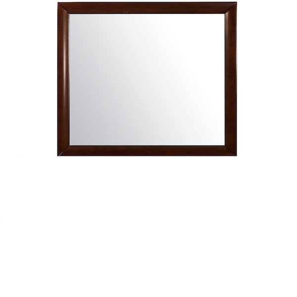 Beautify your space with this 35-inch merlot framed accent mirror. Framed with solid and manufactured wood in a warm dark brown cherry merlot, this mirror will bring practical application and fashionable design to your space, adding some transitional flair to your decor. Features quality craftsmanship in every facet that ensures durability and long-lasting wear. Produced with premium quality glass for a beautiful reflection, this mirror will provide an exceptional visual experience. 35-inch h x 39-inch w x 1-inch d.
