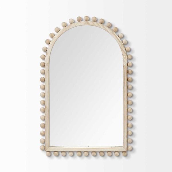 Beautify your space with an ornament that's original and unique at the same time with this 35-inch natural arch wood framed accent mirror. The arch shaped mirror adds a nice touch of depth and texture and also makes it very practical. This mirror makes any room glow with its fantastic frame. Due to its high quality construction, it will last a lifetime. This mirror can fit perfectly in any space and give that space a distinctive look. 35.03-inch H x 22.83-inch W x 1.57-inch D