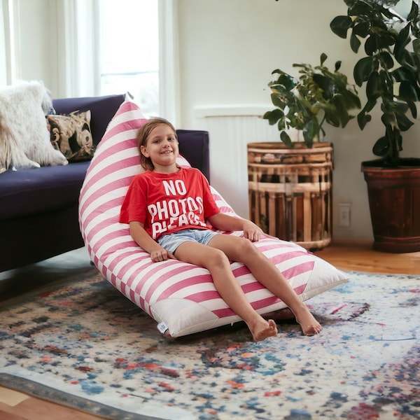 35" Pink and White Microfiber Specialty Striped Pouf Cover