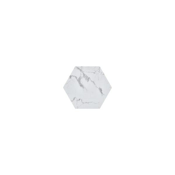 Make a statement with the 35-inch white and gold wood hexagon drum coffee table and infuse a dash of character and personality into your space. Finished in a faux marble pattern, this hexagonal table features a unique style and a base in gold that compliments it well. This unique shape of the table adds a modern geometric accent with dimension and visual interest. If you're looking for something that can fit into a living area, bedroom, or office, this coffee table is for you. This coffee table is the sturdy, reliable and stylish answer to your living room needs. 15.7-inch h x 35-inch w x 30.3-inch d.