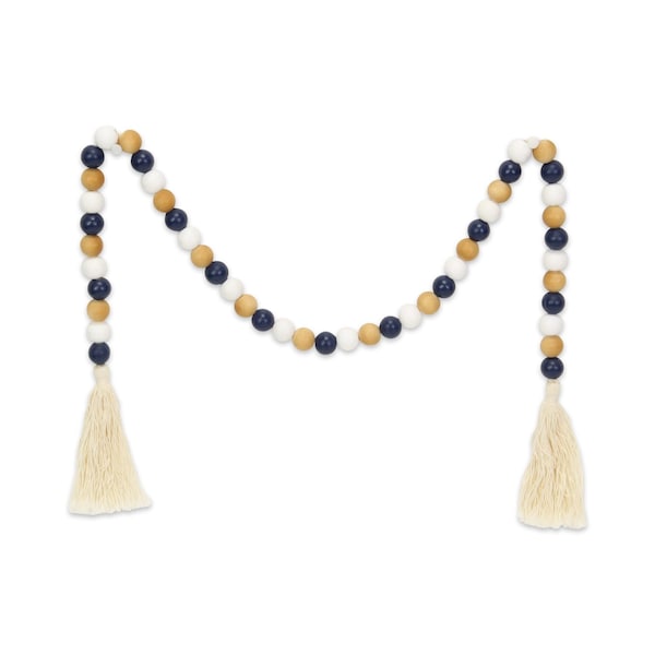 36" Blue Natural And White Wood Hand Painted Decorative Tassel