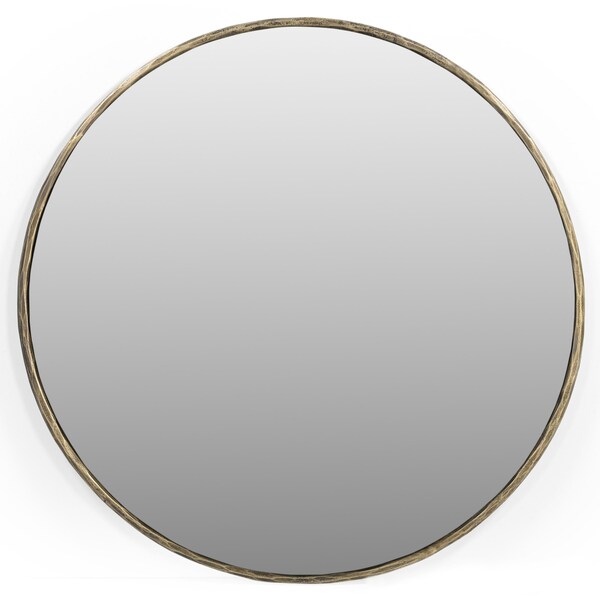 Add a touch of sunshine to any space in your home with this 36-inch brass round iron framed accent mirror. Framed with iron, this mirror will bring practical application and fashionable design to your space, adding some modern flair to your decor. Features quality craftsmanship in every facet that ensures durability and long-lasting wear. Add this exceptional quality mirror to your space for a beautiful reflection and a bit of elevated style. 36-inch h x 36-inch w x 1.25-inch d.