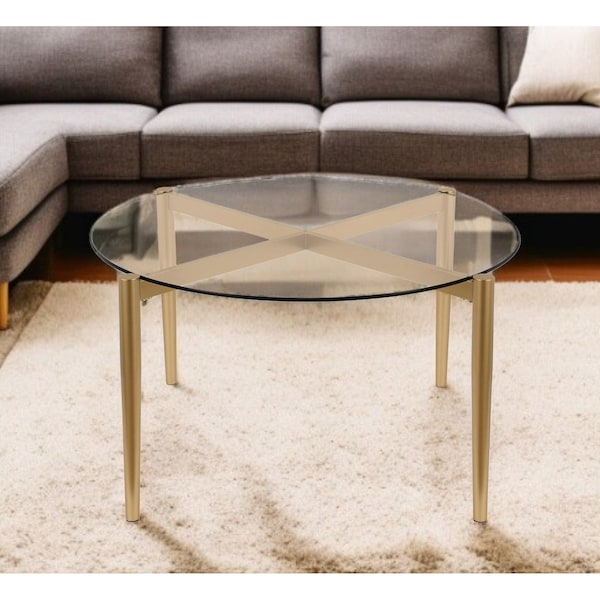 36" Clear And Gold Glass And Steel Round Coffee Table