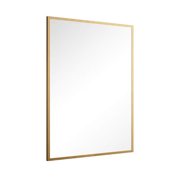 Enhance your bathroom with this 36-inch gold metal framed bathroom vanity mirror. Framed with metal, this mirror will bring practical application and fashionable design to your space, adding some modern flair to your decor. Framed with sturdy metal that won't rust or scratch, this mirror is ideal to mount above your bathroom sink or vanity but is also versatile to be used in other rooms to add practical style and design to your space. Add this exceptional quality mirror to your space for a beautiful reflection and a bit of elevated style. 36.00-inch h x 24.00-inch w x 1.00-inch d.