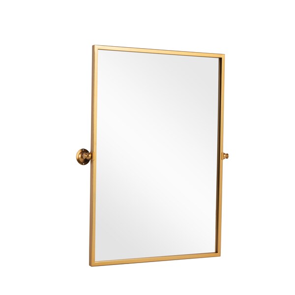 The 36-inch gold metal framed full length hanging mirror will be a fun addition to your bedroom or dressing area. This rectangle shaped mirror will open up any space you put in piece in. This mirror makes your bedroom glow with its fantastic frame. Its casual style makes this mirror a favorite for bringing some flair to your decor. Due to its high quality construction, it will last a lifetime. You can use this mirror on your bedroom door for last minute checks as you head out, or in your closet to help you pick out your outfits in the morning, or just simply to add some brightness in any room you want. 35.76-inch H x 23.97-inch W x 0.79-inch D