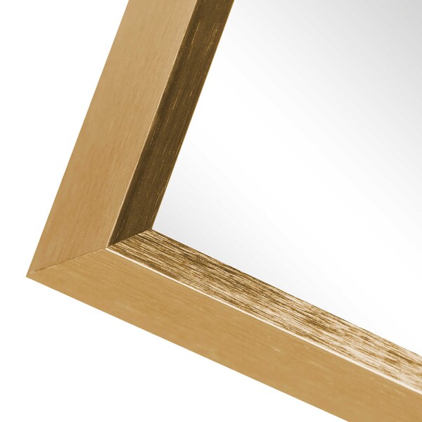 Elevate your space with this stunning 36-inch gold metal framed standing mirror. Its classic rectangle shape and vertical orientation add a touch of sophistication to any room. The gold frame design exudes elegance, complemented by the durable metal material for a lasting impression. Whether wall-mounted or standing, this mirror offers versatile style options to suit your preferences. With a generous mirror width of 23.973 inches, it provides ample reflection for your daily needs. The casual yet chic gold color effortlessly enhances your decor, making it a must-have piece for your home. 35.76-inch H x 23.97-inch W x 0.59-inch D