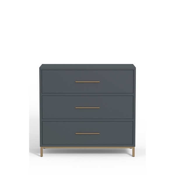 36" Gray Solid Wood Three Drawer Chest