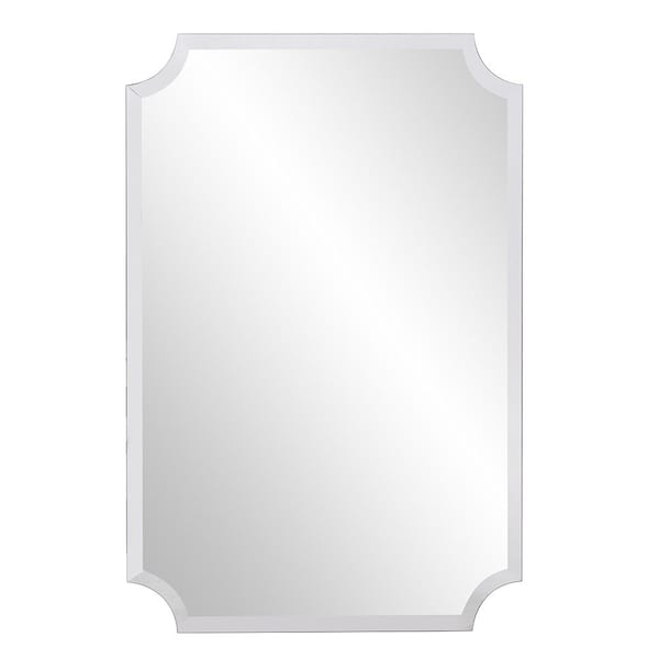 Beautify your space with this 36-inch rectangle with scalloped corner unframed accent mirror. This frameless mirror will open up the room as it reflects the light beautifully from every angle, adding some modern flair to your decor. This mirror will be a great useful addition to your home but will also help elevate the space in the room. Add this exceptional quality mirror to your space for a beautiful reflection and a bit of elevated style. 36-inch h x 24-inch w x 1-inch d.