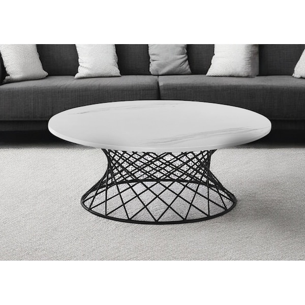 Stylish and super sturdy, the 36-inch white and black genuine marble and metal round coffee table is an amazingly good looking coffee table that will compliment your living room. The white genuine marble top of this table is a nice visual contrast to the high quality, black metal of the base. This round table utilizes its unique shape to give your room a modern geometric accent. It has a fresh design that will definitely breathe some fresh air into your interior. This coffee table is the sturdy, reliable and stylish answer to your living room needs. 14-inch H x 36-inch W x 36-inch D