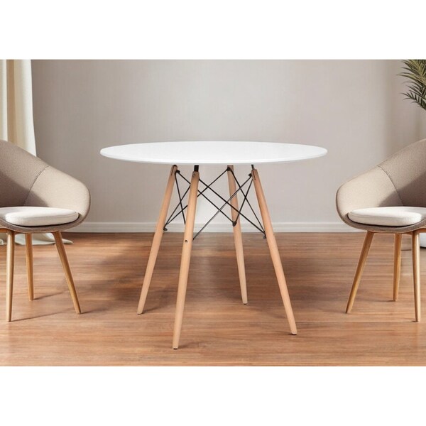This good looking 36" white and natural solid wood dining table is sure to inspire compliments. Quality construction from the natural solid wood base combines with white manufactured wood of the top to give this table a fresh and updated two-tone look. A shiny and sheer gloss finish gives this table a bit of a modern and contemporary vibe. Seat up to 4 family and friends around your new dining table. This table is the sturdy, reliable and stylish answer to your dining room needs. This eye-catching dining table is ready for you to enjoy breakfast for one or entertain your guests. 29" H x 36" W x 36" D