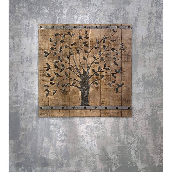 Add an air of fashion to your room and rejuvenate the space with this 36-inch x 2-inch brown mango wood square hanging tapestry. With materials and a finish that is purposefully distressed, this hanging wall decor will instantly liven things up and bring color and dimension to your walls. 36-inch h x 1.5-inch w x 36-inch d.
