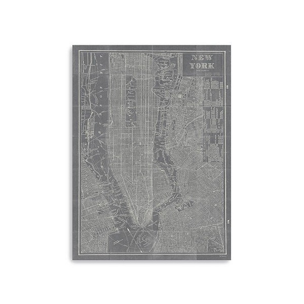 36" x 24" Gray and White Aerial New York Map Canvas Wall Art