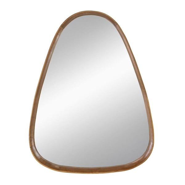 If you want to add some brightness to your living space, the 37-inch brown abstract wood framed accent mirror is perfect for you. This abstract shaped mirror will open up any space you put in piece in. This frame works nicely with the full-bodied mirror in the middle. Due to its high quality construction, it will last a lifetime. This mirror can fit perfectly in any space and give that space a distinctive look. 36.8-inch H x 28.1-inch W x 2.5-inch D