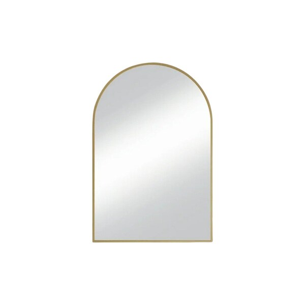 Add beauty to your bathroom or home with this 38-inch gold metal arch framed accent mirror. Framed with rust resistant metal, this mirror will bring practical application and fashionable design to any space, including the bathroom or high humidity coastal areas. Featuring the highest quality glass and a chic design that will add some modern flair to your decor. Features anti-fog and quality craftsmanship in every facet that ensures durability and long-lasting wear. This mirror will provide an exceptional visual experience. 37.80-inch h x 25.98-inch w x 0.55-inch d.