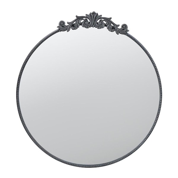 39" Black Crowned Top Iron Framed Accent Mirror