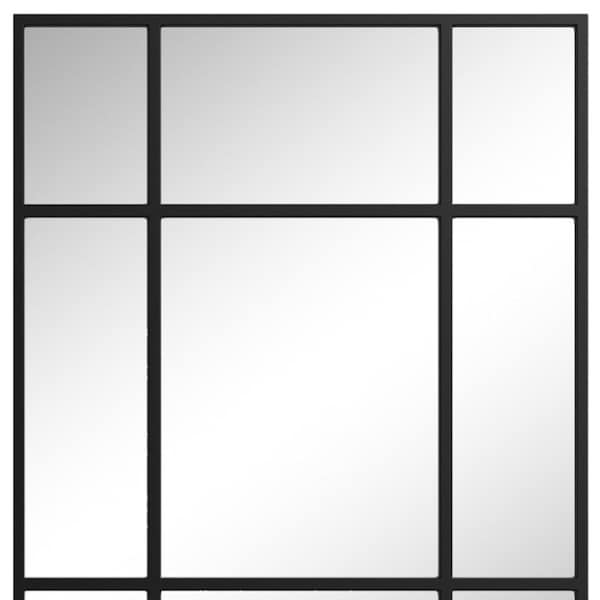 Beautify your space with this 39-inch black iron window pane geometric framed accent mirror. Framed with wrought iron in a unique window pane design, this mirror will bring practical application and fashionable design to your space, adding some modern flair to your decor. Features quality craftsmanship in every facet that ensures durability and long-lasting wear. Produced with premium quality glass for a beautiful reflection, this mirror will provide an exceptional visual experience. 39.00-inch h x 30.00-inch w x 0.78-inch d.