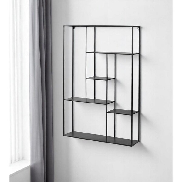 The 39-inch black metal wall mounted tiered shelf is a stylish addition to any living room. Crafted from durable metal, this shelf combines functionality with an industrial design that complements modern decor. Its unique multi-tiered structure offers ample space for displaying books, plants, and decorative items, elevating your home’s aesthetic. The matte black metal finish adds a touch of rustic style. Easy to mount, this shelf maximizes vertical space while maintaining an organized appearance. Perfect for showcasing your favorite treasures or for practical storage solutions, it enhances any wall with sophistication and character. 59.06-inch h x 39.37-inch w x 9.84-inch d.