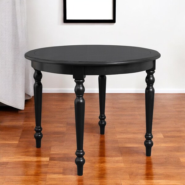 Enjoy making memories around this gorgeous 39-inch black solid wood round top dining table. This table is made from solid wood in a black color throughout the base and top. This dining table seats 4 people comfortably. Complete your kitchen or dining room with this well made and stylish table. The dining table is a symbol for togetherness, special meals, and conversation. This 39-inch black solid wood round top dining table is a must-have for your home. 30.3-inch h x 39.4-inch w x 39.4-inch d.
