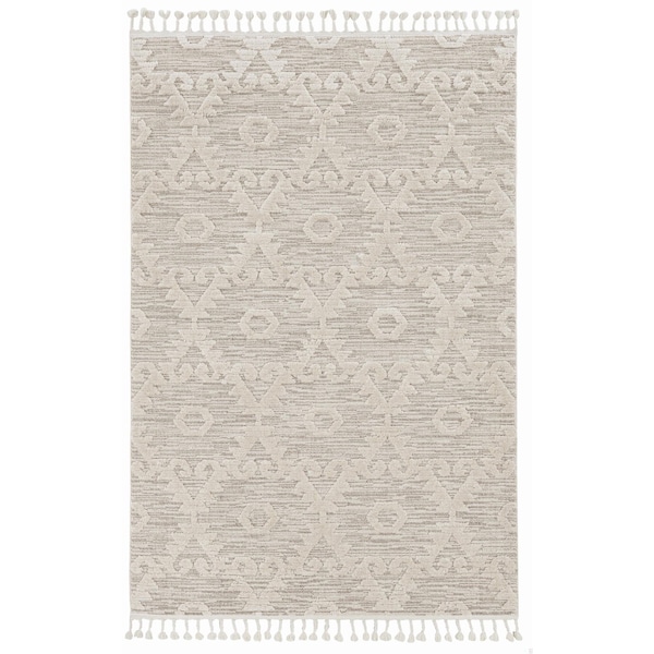 39 x 59 in. Polyester Diamonds Area Rug wth Fringe, Ivory & Beige