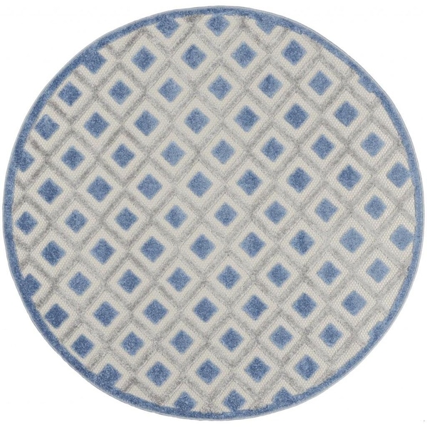 4 ft. Round Blue & Gray Indoor & Outdoor Area Rug