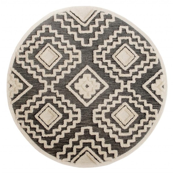 4 ft. Round Gray & Cream Geometric Area Rug