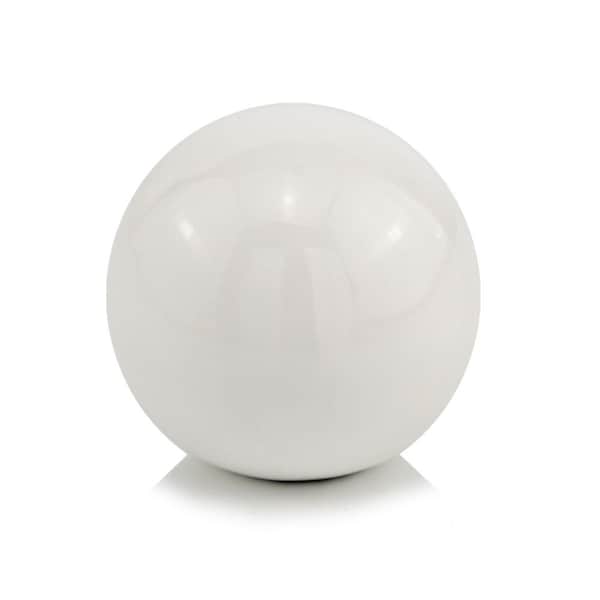 Bring some sizzle to your space with this eye-catching 4-inch white aluminum decorative orb tabletop sculpture. Featuring a modern geometric design, this contemporary piece with a shiny enamel coated finish, adds a stylish touch to your decor effortlessly. The sleek lines of this sculpture make it a captivating focal point in any room, perfect for those who appreciate a fashionable and sophisticated aesthetic. 4-inch h x 4-inch w x 4-inch d.