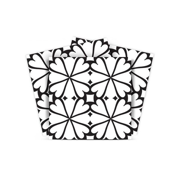 The possibilities are endless with these 4" x 4" Black and White Clove Peel and Stick Removable Tile stickers. These fabulous peel and stick tiles will add lots of color, sophisticated flair, and fun design to your kitchen backsplash, fireplace mantel, stair treads, half wall, bathroom or nook. These 4" square tile stickers in multiple bright fun colors and designs are an easy, no mess solution to complete a personalized and colorful room makeover. Easy to apply on any clean dry flat surface, and easy to remove. Multi use and multi-room appeal make this design option is perfect for renters, landlords, college students and homeowners alike. Peel and stick tile decals make it easy to turn your space into a home. Removable without damage to surfaces. One kit contains 24 stickers. Kit includes a single style tile design.
