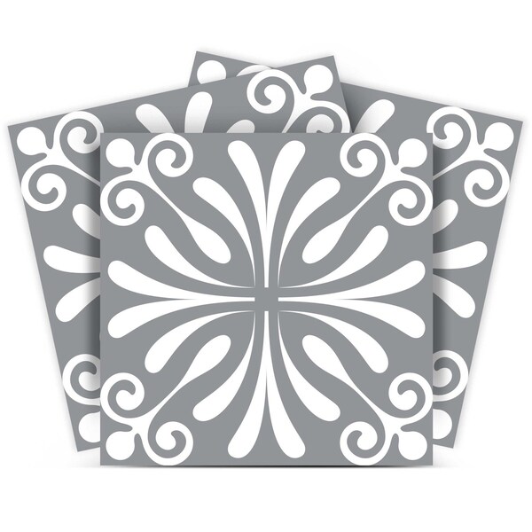The possibilities are endless with these 4" x 4" Gray and White Spire Peel and Stick Removable Tile stickers. These fabulous peel and stick tiles will add lots of color, sophisticated flair, and fun design to your kitchen backsplash, fireplace mantel, stair treads, half wall, bathroom or nook. These 4" square tile stickers in multiple bright fun colors and designs are an easy, no mess solution to complete a personalized and colorful room makeover. Easy to apply on any clean dry flat surface, and easy to remove. Multi use and multi-room appeal make this design option is perfect for renters, landlords, college students and homeowners alike. Peel and stick tile decals make it easy to turn your space into a home. Removable without damage to surfaces. One kit contains 24 stickers. Single Tile Deisgn.
