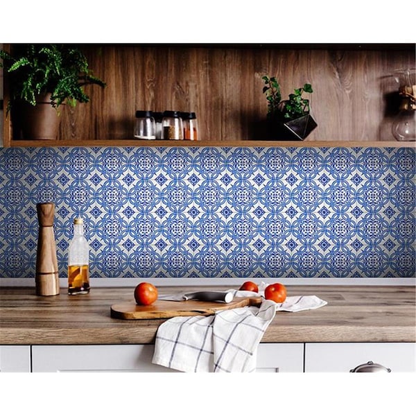 4 x 4 in. Blue & White Valencia Peel & Stick Tiles