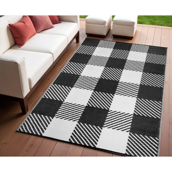 4' X 6' Black Geometric Indoor Outdoor Area Rug