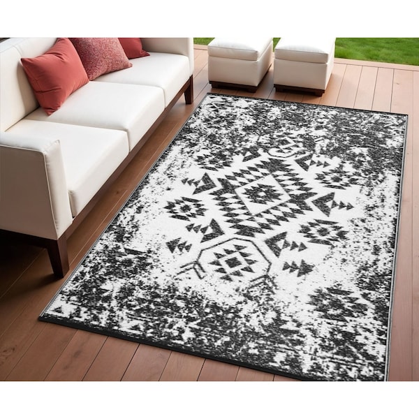 4' X 6' Black Indoor Outdoor Area Rug