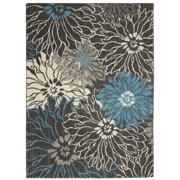 4 x 6 ft. Charcoal & Blue Big Flower Area Rug