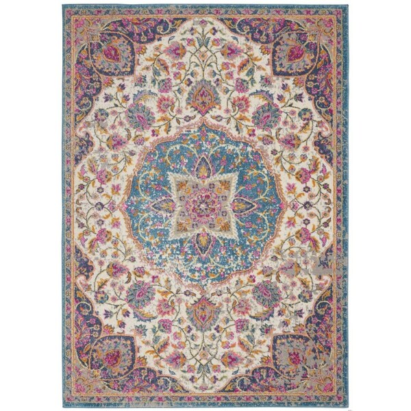 4 x 6 ft. Pink & Blue Floral Medallion Area Rug