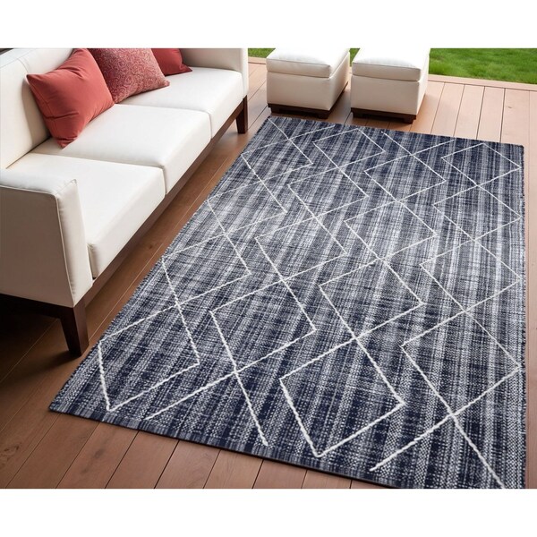 4' X 6' Navy Blue Geometric Hand Woven Area Rug