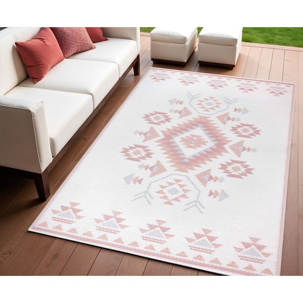 4' X 6' Orange Geometric Indoor Outdoor Area Rug