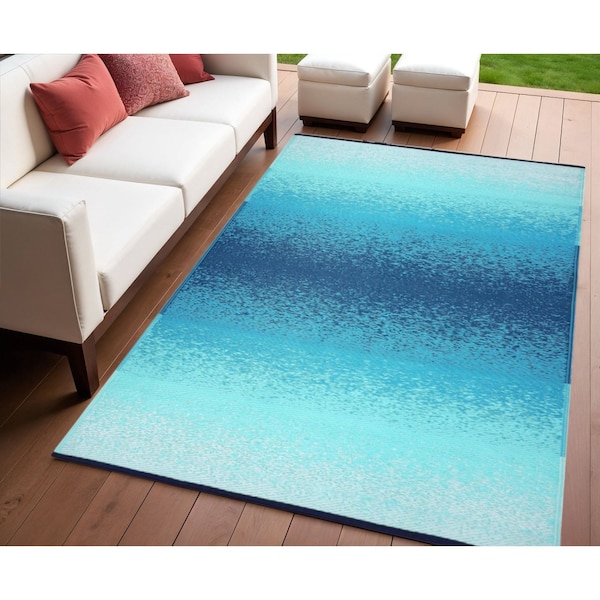 4' X 6' Teal Blue Machine Braided Distressed Area Rug With UV Protection