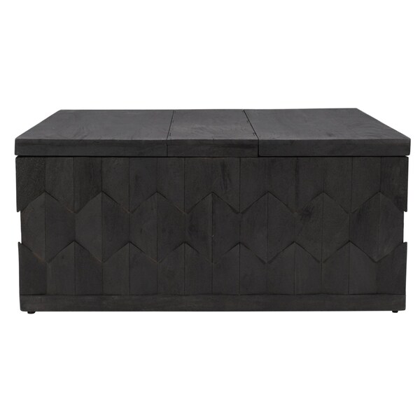 This stylish 40-inch dark gray solid wood square distressed solid trunk coffee table is not only practical, but good looking and built to last. Create an inspiring atmosphere in most any room with this dark gray solid wood table. The purposefully distressed finish gives this table an authentically rustic feel. This trunk table provides hidden storage that is great for blankets, pillows, and small accessories. This square table utilizes its unique shape to give your room a modern geometric accent. If you're looking for something that can fit into a living area, bedroom, or office, this coffee table is for you. 18-inch h x 40-inch w x 40-inch d.