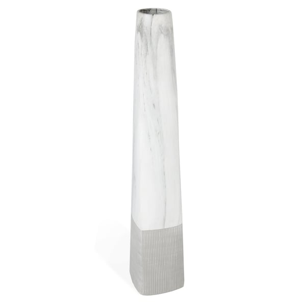 40" White Faux Marble Tapered Ceramic Floor Vase