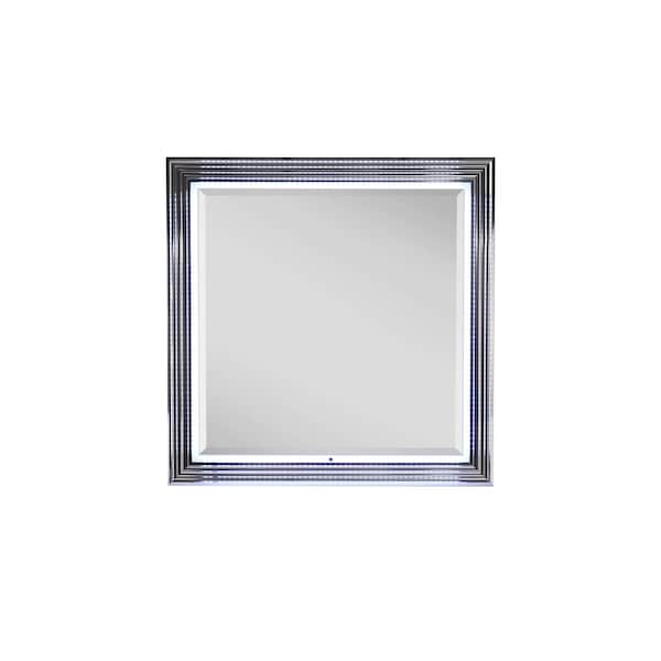This 42-inch silver and white wood square lighted dresser mount framed mirror adds the finishing touch to your bedroom. Framed with manufactured wood, this mirror will bring practical application and fashionable design to your space, adding some transitional flair to your decor. This mirror will be a great useful addition to your home but will also help elevate the space in the room. This mirror is the perfect choice to update your bedroom and create a sanctuary of comfortable and inviting relaxation for your home for years to come. Produced with premium quality glass for a beautiful reflection, this mirror will provide an exceptional visual experience. 41.73-inch h x 41.73-inch w x 2.05-inch d.
