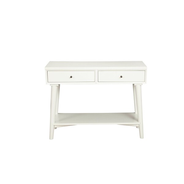 Don't settle for a boring entryway, upgrade your home with our 42-inch white solid wood console table with shelves and drawers today. This versatile table is a classic rectangular shape, which will easily fit into most any space in your home. The white hardwood table surface makes this unit stand out with its high quality material and construction. In addition to a great top, our console table has a high quality manufactured wood four leg base that is durable and easy to clean and maintain. Ideal for living rooms, bedrooms, home offices, and lounge areas, this console table is not only good looking but multi-functional and practical addition to your space. 33-inch H x 42-inch W x 14-inch D